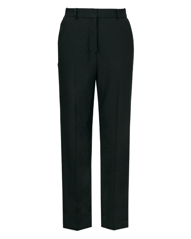 エコ素材のテーパードパンツ。細見えなのにふくらはぎにはゆとりのあるデザイン。折山プレスで足のラインが形よく、足長効果を発揮。ゴムなしに見えるウエストは10cm伸びる「すごラクウエスト」仕様となっています。また、深履きなのでしゃがんでも背中が出る心配がありません。股下は67cmに裾上げ済みで届いたその日から着用可能。ペタンコ靴でもヒールでもサマになります。 耐久性、伸縮性、通気性に優れたメッシュ裏地を使用。両脇ポケット付き。家庭洗濯が可能。黒、ベージュの2色展開。上下をリサイクル・ニットシリーズで揃えることで、セットアップのコーディネートが可能です。