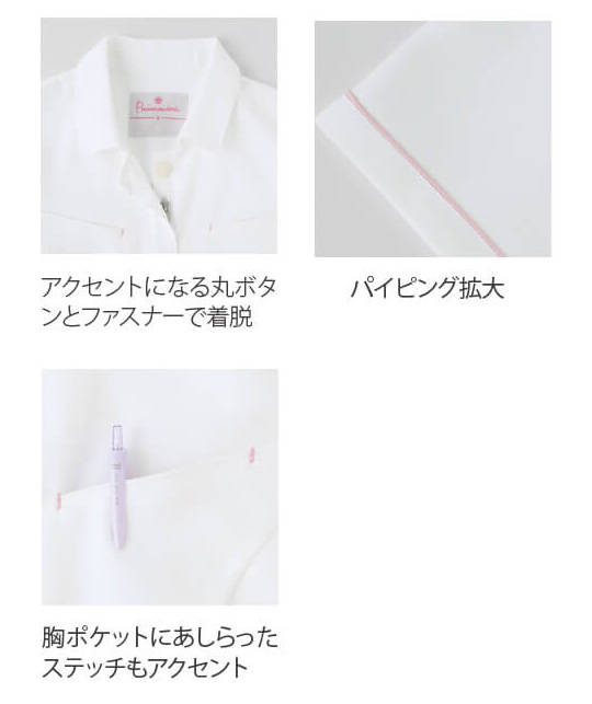Topジャケット 【会員専用】 細見え!配色ステッチナースジャケット(サックス) 通常販売価格: ¥6,200(税込) 価格: ¥4,000 (税込) 35%OFF 販売期間: 数量: 点 サイズ在庫購入S38点 M72点 L47点 LL22点 3L18点 サイズ在庫購入S38点 M72点 L47点 LL22点 3L18点 返品についての詳細はこちら 袖口やポケットにアクセントカラーを配したベーシックながらも華やかなデザイン。両サイドから後までつながった大きなポケットが特長です。左右の胸ポケットには配色ステッチをあしらい、アクセントに。ピンク×コーラルピンク、サックス×コバルトブルー、ホワイト×ピンク、ホワイト×サックスの4色展開です。 裏綿ストレッチツイル ポリエステル90% 綿11%